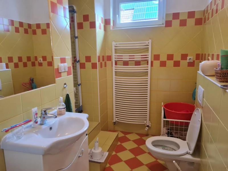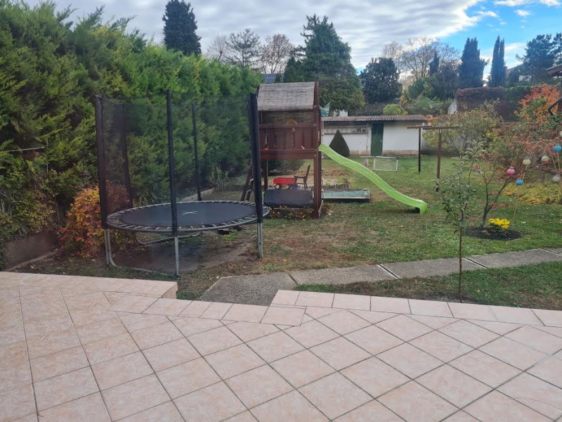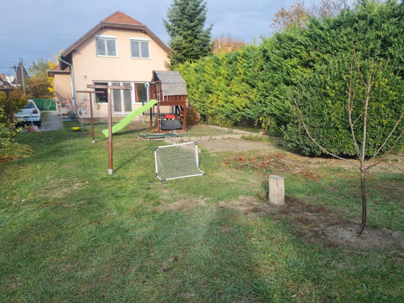 A kert teljesen sík, nagy, a szomszédok rendezettek, kedvesek. A közlekedés kiváló, a busz 5 perc gyalog.