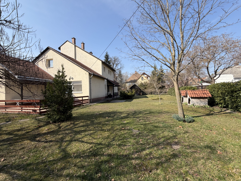 Budapest III. kerületének egyik legkedveltebb, zöldövezeti részén, Rómaifürdőn kínálunk megvételre egy 1109 m²-es saroktelken elhelyezkedő, kétgenerációs családi házat. Az ingatlan per- és tehermentes, 1/1 tulajdonban van, és a tulajdoni lapon is két különálló lakásként szerepel, ami ideálissá teszi több generáció együttélésére vagy befektetési célra.