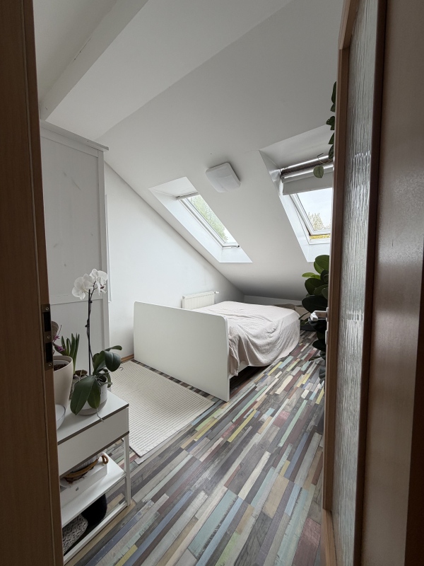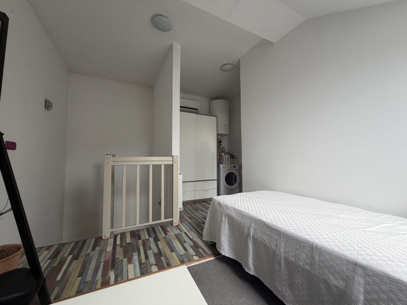 A felső szinten előtér, jelenleg gardrób szoba és hálószoba, valamint egy második fürdőszoba került kialakításra.