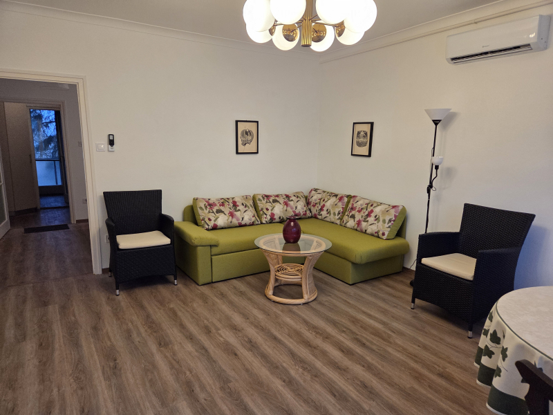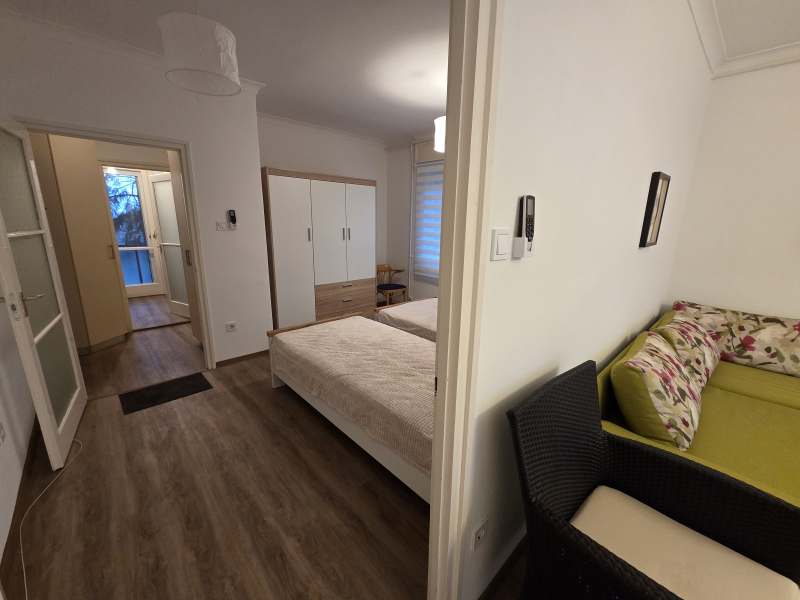 A XII. hegyoldalában a Kissvábhegy egyik legszebb utcájában az Álom utcában kiadó ez az 57 m2-es 2 szobás bútorozott, gépesített szép lakás.
