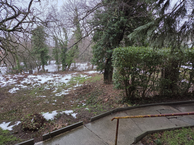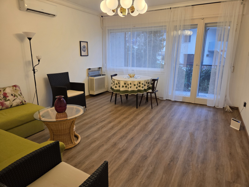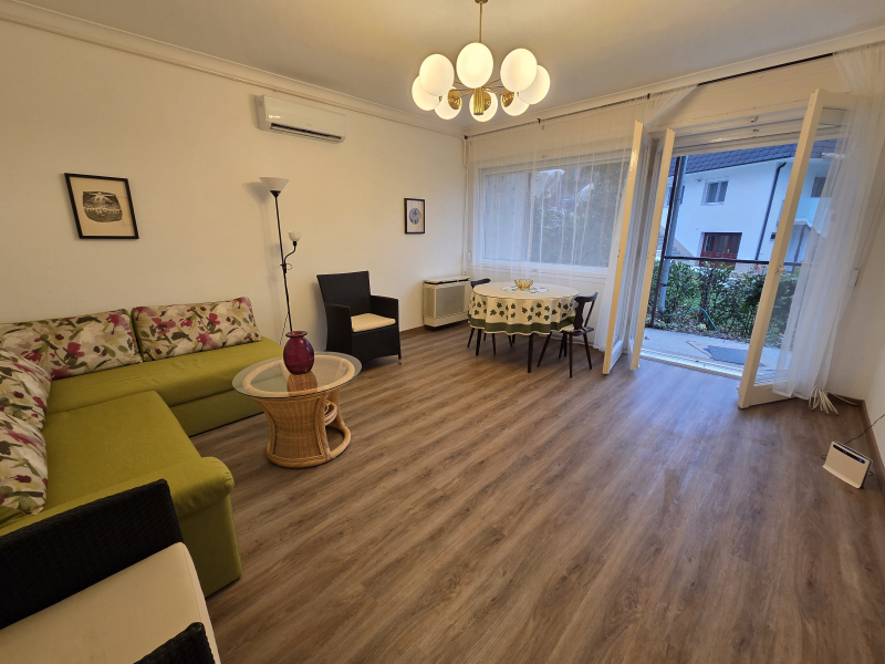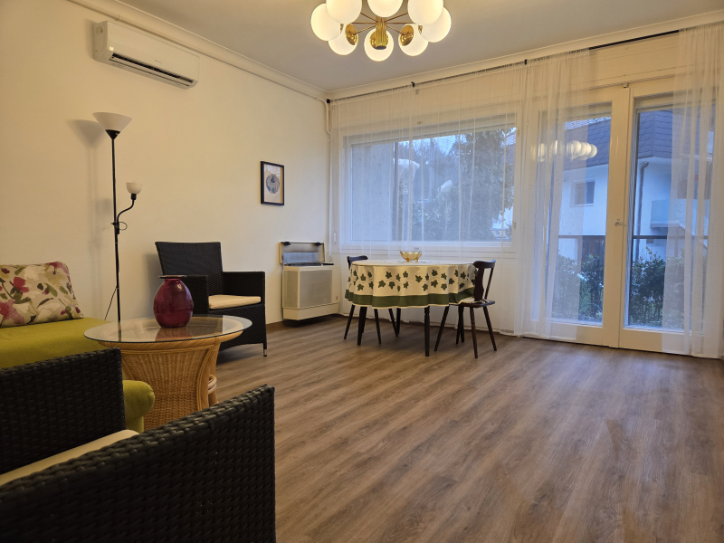Az ingatlan természetvédelmi terület közvetlen szomszédságában van, háromszintes 12 lakásos téglaépítésű ház földszintjén.